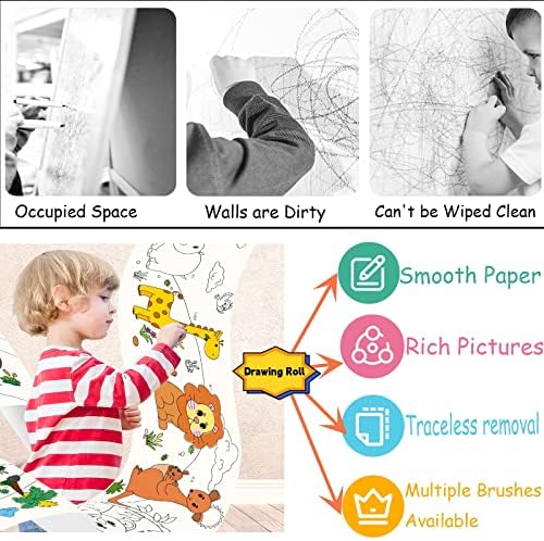 ✨【Easy to Stick】✨You can stick to the wall, furniture, table, floor, etc., the specially designed back sticker will not leave any marks on the wall and will not damage your wall. Kids can stick this drawing roll on walls, furniture, desks, floors, easels and anywhere they want to create.
