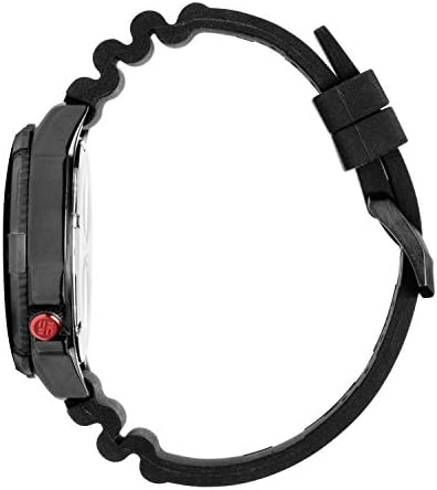 The Peak Patrol collection is an edgy renegade in wrist wear and timing gear. A chiseled bezel with peaks and valleys forged into the steel casing display numeral markings that add a functional timer when paired with the analog watch movement. The custom designed water-resistant silicone strap is designed for durability and rugged conditions. Featuring a sand-blasted finish dial texture and added function of a day-date calendar, the Peak Patrol takes timing to the extreme.