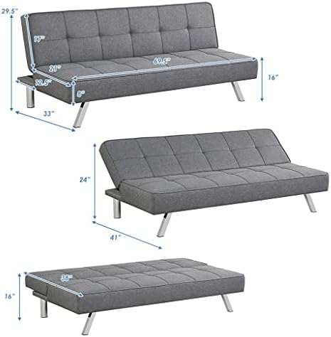 Our convertible sofa bed is a good choice for small apartments. 3 adjustable angles (105°, 150° and 180°) allow you to adjust it according to your different needs. Breathable linen fabric and comfortable seat cushion provide you with super comfort. Besides, the thickened backrest can protect your waist and back. Durable frame and solid stainless-steel feet ensure high stability and sturdiness, which perfectly protect your safety. And compact size makes it suitable for various places, such as bedroom, living room and drawing room.