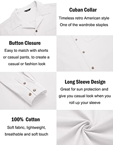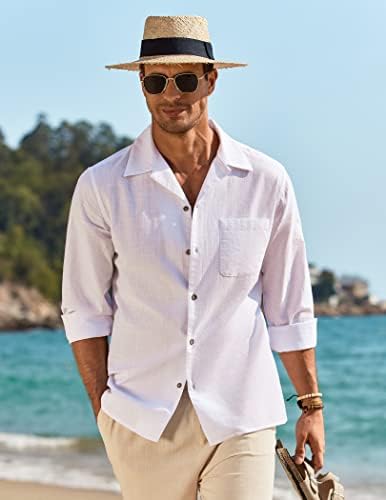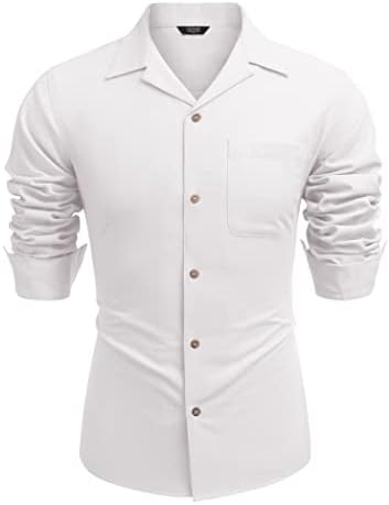 Casual Design — The long sleeve linen shirts designed with classic regular fit, cuban collar, button down closure and left chest pocket.
