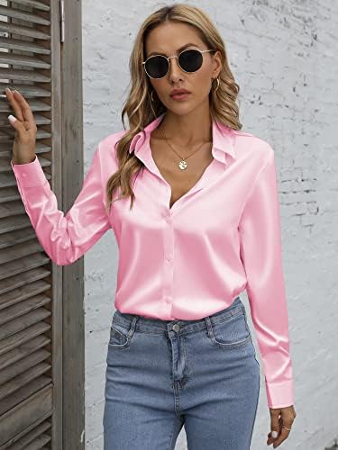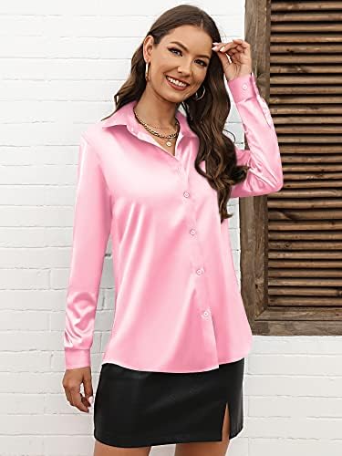 Womens Button Down Shirts Satin Silk Casual Button Up Shirt Work Blouses