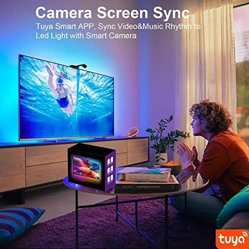 🔆【Video/Music Rhythm/Scene Mode 】The TV LED backlights color sync from the TV video through the camera capture screen, Music rhythm sync through the camera’s microphone, Scene Mode color sync through the phone App. Contains 2 color syncs, 9 musical rhythm, and many scene controls.