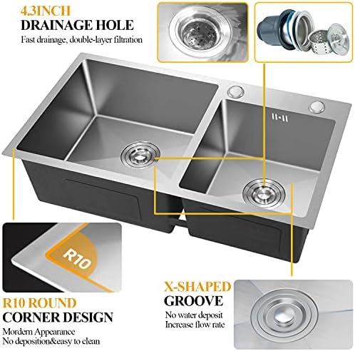X-shaped Design: X-shape water guiding line at the bottom of the stainless kitchen sink direct water toward drain faster to prevent blockage. The looks and functions has added a real wow factor to the kitchen design. Looks great and easy to clean overall.