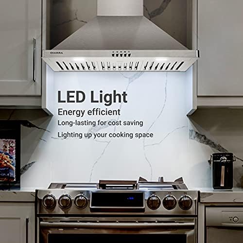 30 inch vent hood with replaceable LED lights are energy efficient and cost saving. More than 20000 hours life time. Lighting up your cooking space for better visibility.