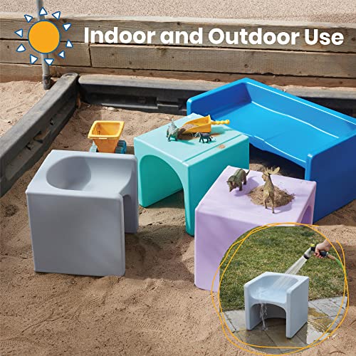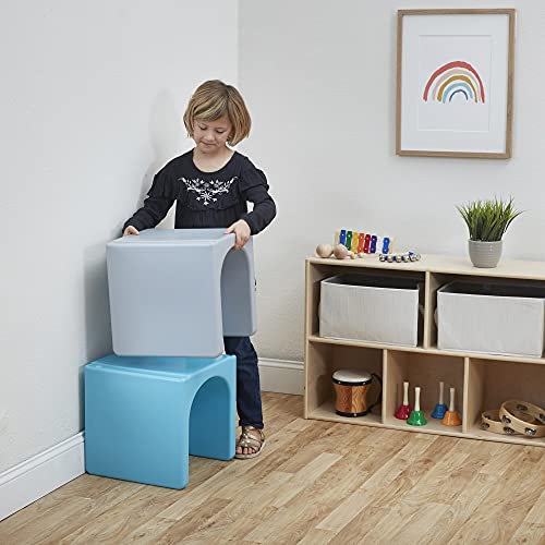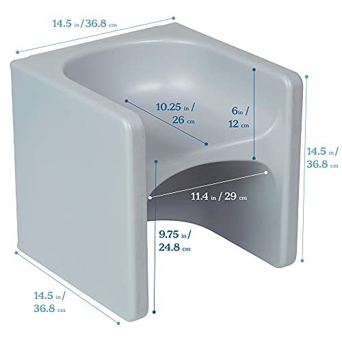 Tri-Me Adaptable Cube Chair offers the appeal of 3-in-1 fun. Children and adults can transform the cube chair from a 6” seat, to a 9.75” seat, or flip it to use as a table. The graduated sizes allow this plastic weaning chair to grow with your child, even using the tabletop surface as a stool seat later. This lightweight toddler chair features a curved seat-back design that hugs children keeping them comfortable, and encouraging proper posture for coloring, playing with building blocks, board games, or other seated activities. Kids benefit from alternative seating that allows for less fidgeting, more collaboration, and confidence in choosing their educational set-up. The one-piece design is crafted from durable UV-protected plastic with a textured surface and rounded edges for safety that won’t chip, crack or peel under typical conditions. This multipurpose indoor or outdoor furniture is designed for everyday use in the classroom or at home. The toddler chair is a great seating option for the kitchen, living room, or outside on the playground or patio. When learning time is over, chairs can be placed on top of each other using the built-in ridges to save valuable floor space; additional chairs are sold separately.