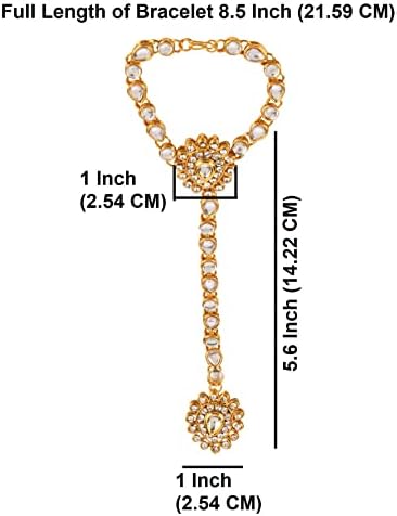 Unique chunky cute light weight gold plated CZ ring chain bracelet/ hathful: L x W: 8.5″ Inch x 1″ Inch(21.59 cm x 2.54 cm),Closure: fish Hook with adjustable chain Metal: Alloy.