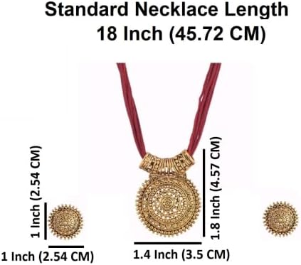 Indian Traditional Jewelry Set, Content: a) 1 Strand Necklace Length: 18 Inch (45.72 cm) b) Pendant Length x Width: 1.8 Inch x 1.4 Inch (4.57 cm x 3.5 cm) with an ‘S’ Hook Closure, b) A pair of Stud Earrings L x W: 1 Inch x 1 Inch (2.54 cm x 2.54 cm), Metal: Alloy.