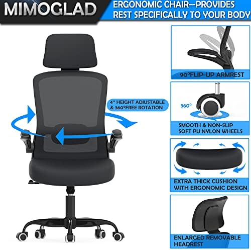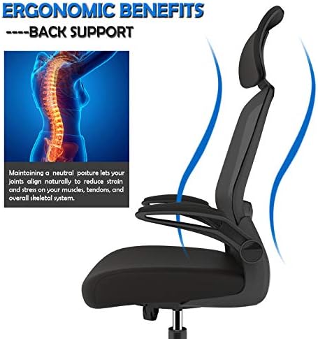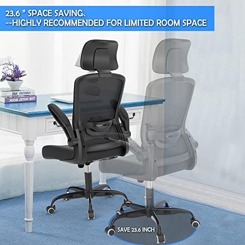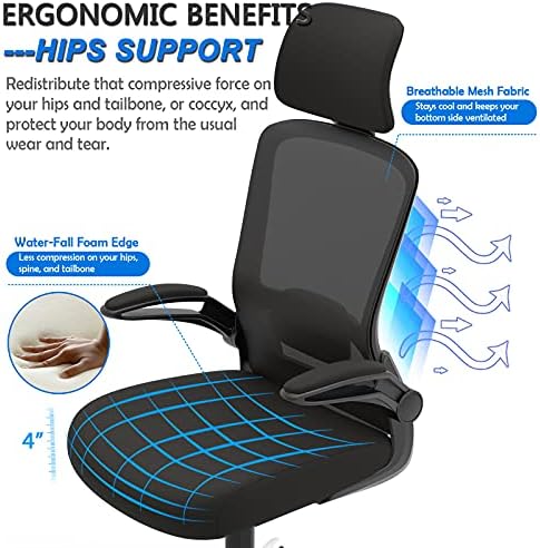 Ergonomic Office Chair, Home Office Desk Chair with Adjustable Headrest & Lumbar Support. High Back Mesh Computer Chair with Thickened Cushion &Flip-up Armrests, Task Executive Chair for Home Office