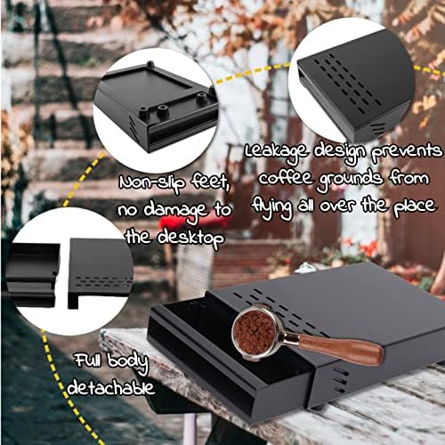 【Stability】Espresso knock box six pieces anti-slip feet on the bottom of box, prevent the coffee grounds box from moving and reduce the noise when knocking. Heat dissipation holes on the left, right and top of box, convenient heat dissipation.