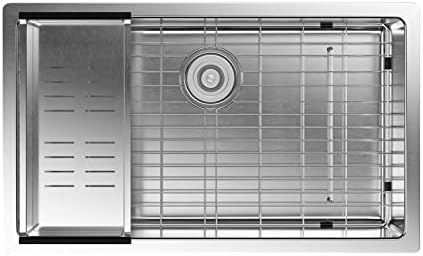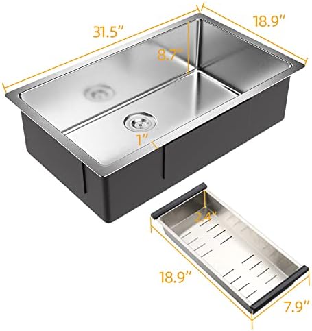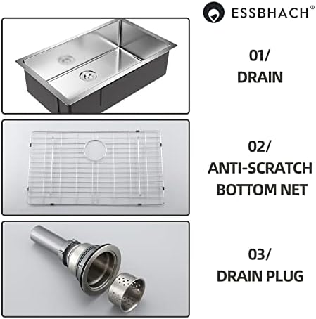 Essbhach Kitchen Sink, 32 inch Undermount 16 Gauge Single Bowl Kitchen Sinks, 304 Stainless Steel Sink with Drain Strainer and Accessories