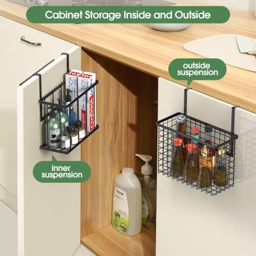 【View Items Inside with Open Design】Open wire design allows you to see the items inside the basket, which makes it easy to find the ingredient, potato,hair dryer ,or any other item you need.No drill required.The hanging cabinet organizer ,easy to hang on and take off.Not only make your room tidy, but also protect your lovely cabinet with neat appearance.