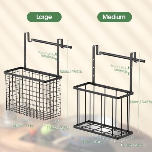 Fenfiny Over The Cabinet Organizer,2 Packs Grid Storage Wire Basket with a Towel Bar,Cabinet Door Organizer for Bathroom,Kitchen,Pantry Items, Thick Wire Grid,Black