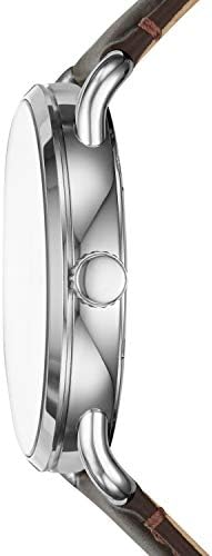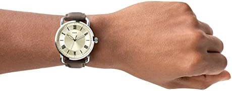 Stainless steel case with cream sunray dial; genuine brown leather band with adjustable buckle closure; interchangeable with all Fossil 22mm straps