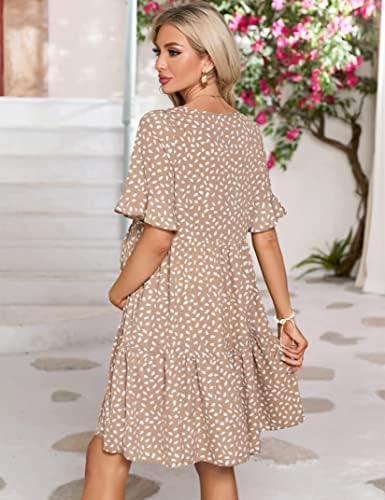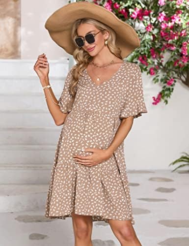UNIQUE DESIGN: Women’s maternity casual loose flowy swing shift dress. deep v neck, ruffle short sleeve, boho floral printed, ruffle hem, tiered design, flowy pleated dress.