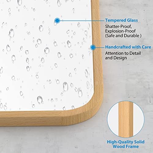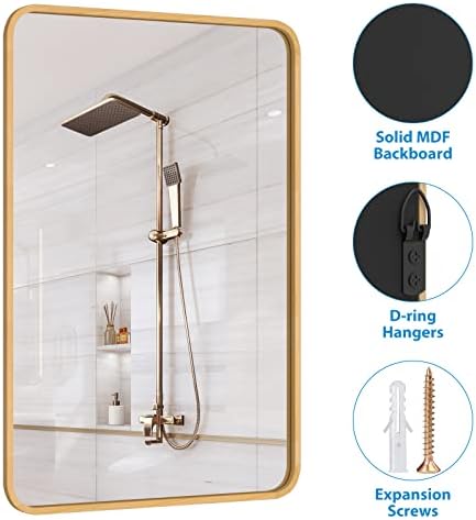 FUWU HOME Wood Bathroom Mirror for Wall 24″ x 36″ Farmhouse Rounded Corner Rectangle Mirror with Wooden Framed for Home Living Room Bedroom Wall Mounted Decorative Mirror (Natural Beech Wood)