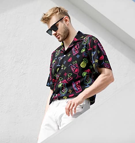 [Fashion Neon Design] GADZILLE shirt for men is designed in a unique hawaiian style, with a classic regular fit, spread collar, button down and left breast pocket, easy wearing. Beer shirts pattern hawaiian shirt with a vivid print that is casual yet stylish, exquisite and gorgeous colors, retro chic, let your temperament shine.