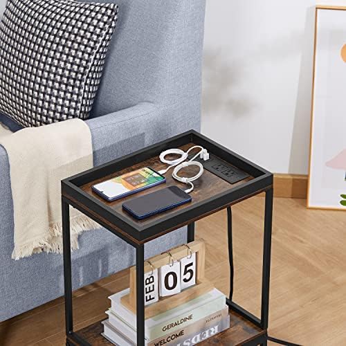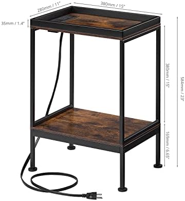 GIOPACO Small End Table with Charging Station and USB Ports, Small Side Table Nightstand with 2-Layer Storage Shelves for Small Spaces, Living Room, Bedroom, Rustic Brown (1)