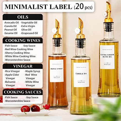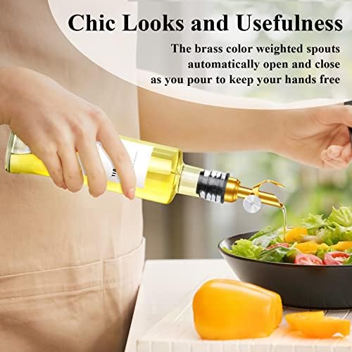 GIXSEGIE Oil and Vinegar Dispenser Set, Oil Dispenser With Brass Color Spout, Bamboo Tray and 20 Labels, Coffee Syrup Dispenser, Glass Olive Oil Bottles for kitchen