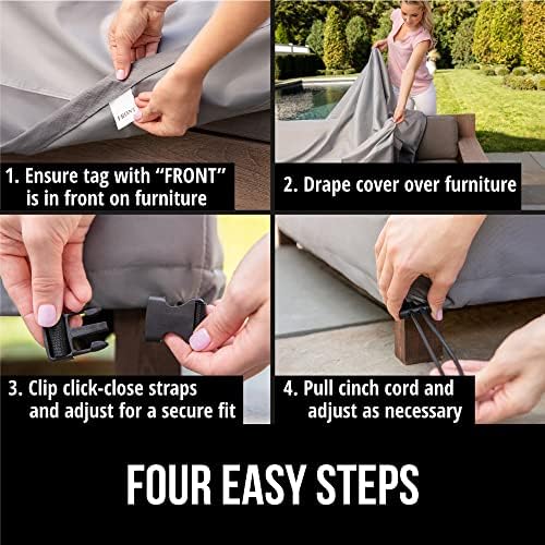 Windproof Straps: click close straps fasten securely around furniture legs to help keep the covers in place; adjustable cinch cords allow for tightening or loosening as needed; will stay tight on furniture even during windstorms