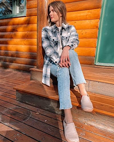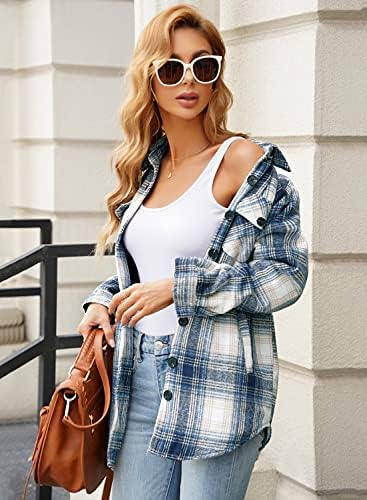 Women plaid shacket jacket features oversized fit, turn-down collar, long sleeves with button cuffs, bust pockets, side pockets and boyfriend style. Flannel shacket jacket for women