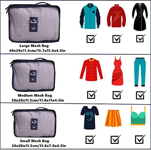 🎀 Value Set: You will get 6 pcs set travel packing cubes,they are in different sizes of 3 mesh packing cubes and 3 laundry pouches, Allows you to easily store and makes it easy to pack and unpack. Satisfy all your different travel needs. Make full use of the space in your luggage.