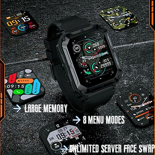 ⌚A POWERFUL FITNESS PARTNER – Incredibly Durable – Tougher Than Tough. It has features like crack resistance, IP6X certified dust resistance, swimming and IP68 water resistance, 1.83-inch high-end brightness and 240×286 resolution for a better viewing experience. A detailed usage guide is included in the box, simple operation and easy to follow to maintain your daily situation