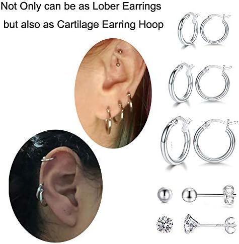 【Different Hoop Earrings Sizes】: The Inner Diameter of the cubic zirconia small hoop earring is : 13mm(5.1in), 16mm(6in), 20mm(7.87in). 2mm ball and CZ stud earrings. Lightweight and Comfortable to Wear. 3 Different Sizes suitable for Multi-Purpose Use in daily life. Not Only can be as Sleeper Earrings, but also as Cartilage Earring Hoop. You could Share this 3 Pairs Hoop Earrings Set with your Family & Friends. Suitable for Women, Men, Girls, Boys & Children.
