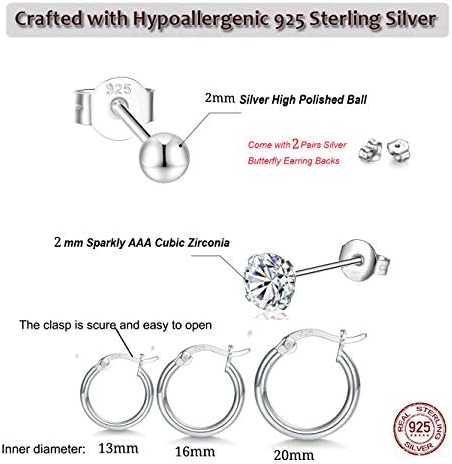 【Ideal Gift Choice】: Gulicx Silver Stud Hoop Earrings set come in a nice White & Blue Jewelry Gift Box. A good Birthday / Wedding / Graduation / Mother’s Day / Thanksgiving Day / Christmas / New Year / Valentines Day Gift for Yourself, Mom. Aunt, Wife, Sister, Niece, Daughter Girlfriend,Women Friends.