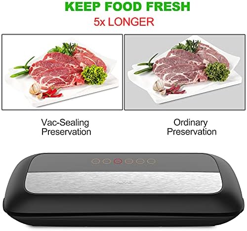 【Multifunctional Design】The vacuum sealing machine adopts the latest design and is made of stainless steel and ABS environmentally friendly materials. The control center is located at the top of the panel, with a touch-button design. After powering on, you can clearly see all the buttons and select the mode you want.Memory foam is used in the vacuum area to extend the service life of the machine.