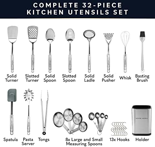Home Hero Kitchen Utensils Set – Stainless Steel Cooking Utensils Set with Spatula – Kitchen Gadgets & Kitchen Tool Gift 32-pcs Set