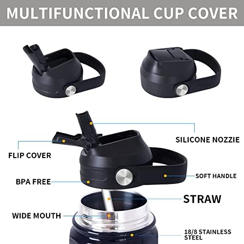 HOMMBENM Kids Water Bottles With Straw Lids Stainless Steel Vacuum Insulated Double wall Wide Mouth Water Bottles for School Boys,Girls