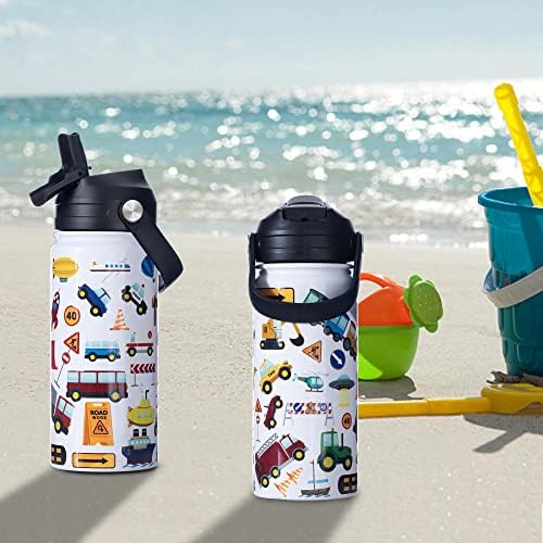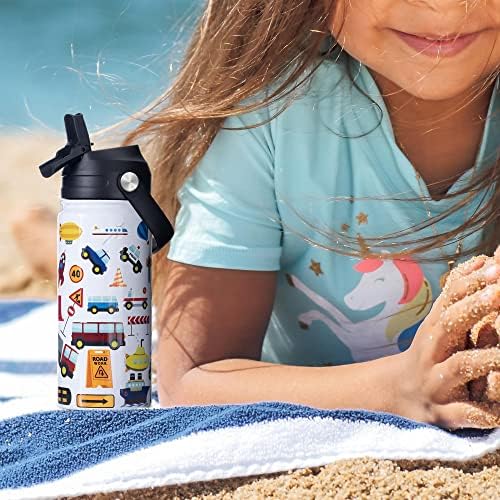 HOMMBENM Kids Bus Water Bottles With Straw Lids Stainless Steel Vacuum Insulated Double Wall Wide Mouth Water Bottles for School Boys,Girls (Bus,16oz)