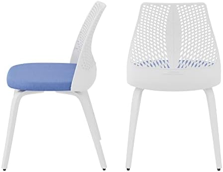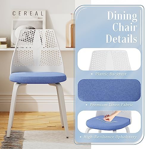 Homtique Dining Chairs Set of 2 Modern Accent Chair with Wooden Legs Living Room Side Chair with Mesh Backrests DSW Chair Comfy Upholstered Armless Chair for Kitchen, Dining Room, Bedroom, Light Blue
