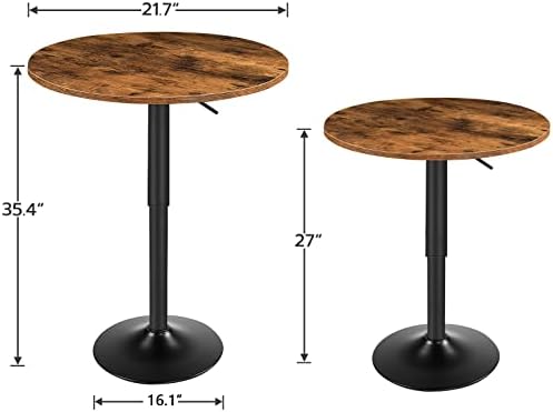 HOOBRO Bar Table, Height-Adjustable Round Pub Table 27-35.4 Inches, Cocktail Table with Base, Modern Style, Suitable for Living Room, Dining Room, Bistro, Rustic Brown BF58BT01G1