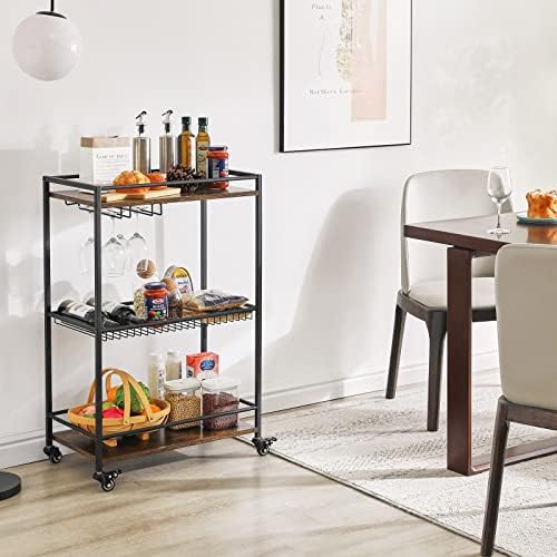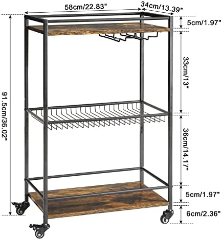 IBUYKE Industrial Bar Carts for The Home,Wine Rack Table,Mobile Bar Serving Cart with Wheels, 33.5 x 22.8 x 13.4 Inches,Mini Bar for Outdoor, Living Room, Kitchen TMJ911H