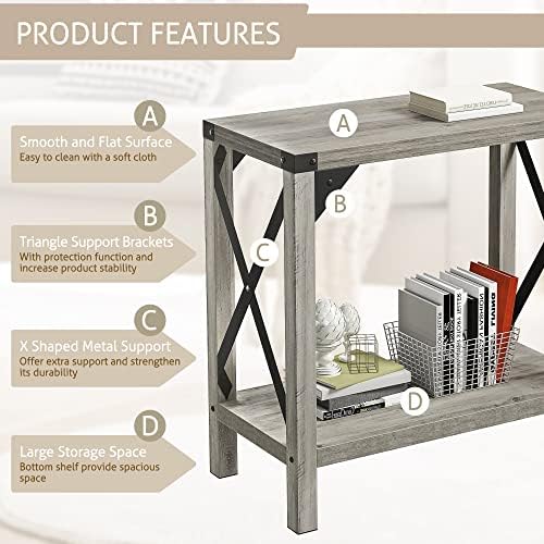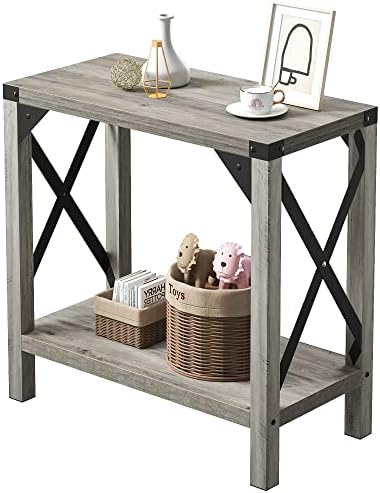 IDEALHOUSE Narrow End Table for Small Spaces, Rectangular Farmhouse Nightstand Sofa Side Table for Living Room, Bedroom, Lounge(Grey)