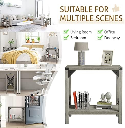 Roomy, Practical, Decorative: With a dimensions of 23.62”L x 11.81”W x 23.62”H, the slim farmhouse end table is compact, you can place it in many places such as sofa side table, couch table, bedside table, porch bedside table, bedroom, living room, entryway, hall, etc. to store remote control, notebook computers, telephones, books, lamps and other daily necessities. Also a must for decorating your home.