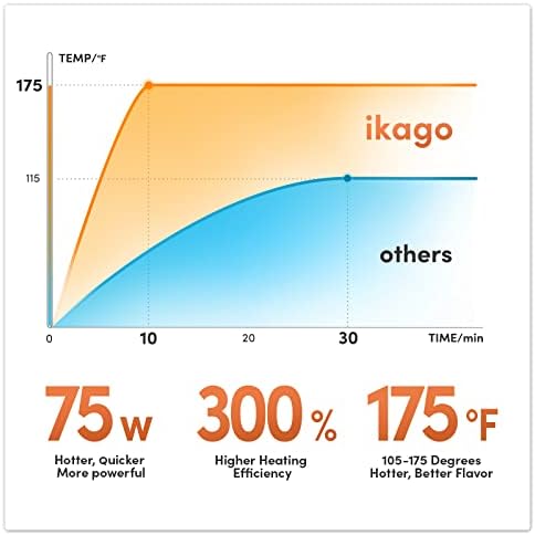 [Warmer and Faster] The heating process of ikago coffee cup warmer is 50% quicker with up to 175°F peak temperature, providing more flavors to your taste, with only 20 minutes to bring the drink from 75 to 125°F.