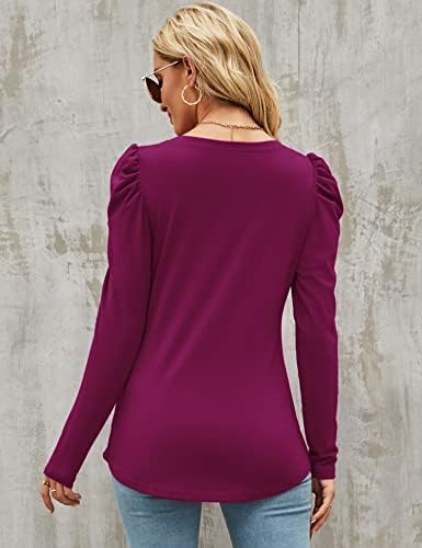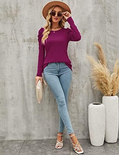 ★【Design】: The puffy shaped sleeves on the shoulders create a fresh and fashion style, which make you look younger and more energetic. The long sleeve crew neck blouse is long enough to cover the hips without revealing the belly