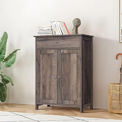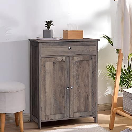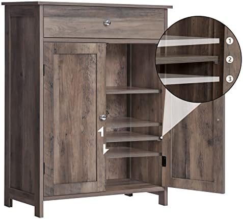 Iwell Bathroom Floor Cabinet, Storage Cabinet with 1 Drawer 2 Shelves and 2 Doors, Freestanding Bathroom Cabinet for Living Room, Kitchen, Entryway, Rustic Oak