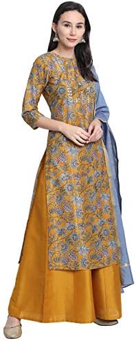 Style: Straight 48″ length Kurta with 3/4 Sleeve;Palazzo of length 39″;Dupatta of Length 2.25 Mtr