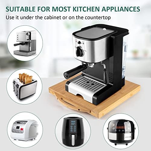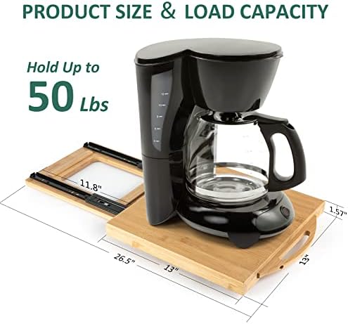 Space-Saving and Easy to Storage: Placing the coffee maker sliding tray under the cabinet or in the countertop corner, you can keep your countertop tidy and space-saving. Note: Please measure your counter length and width before purchasing.