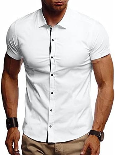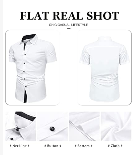 Men’s stylish dress shirt design in slim fit, classic turndown collar, The collar’s collision splicing design makes this dress look very fashion. Button up closure, solid color, short sleeve, make you handsome and attractive.