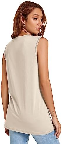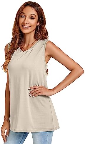 【DESIGN】:Loose fit womens summer tops feature crew neck and sleeveless design, allowing for easy movement and ultimate comfort. The simple elegance of the solid color makes this ladies top a timeless classic.