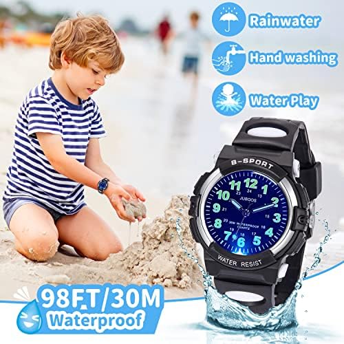 DAILY WATERPROOF: 30M/98FT waterproof, Kids waterproof watch is suitable for daily waterproofing such as hand washing, rain, sweat, etc. Note: Not suitable for diving, bathing, swimming, etc. which will cause damage to the waterproof rubber ring of the watch and cause water to enter.