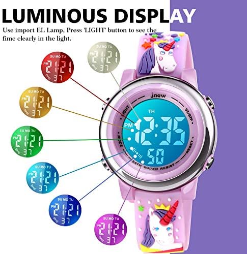 SEVEN BACKLIGHT COLORS: Use imported LED Colorful LED lights, just press the backlight button on the left, you can clearly see the time at night. dark blue, green, red, sky blue, orange, pink, purple, these seven backlight colors can be adjusted when you hold down the upper-left backlight button for 3 seconds, this can satisfy the child’s curiosity.