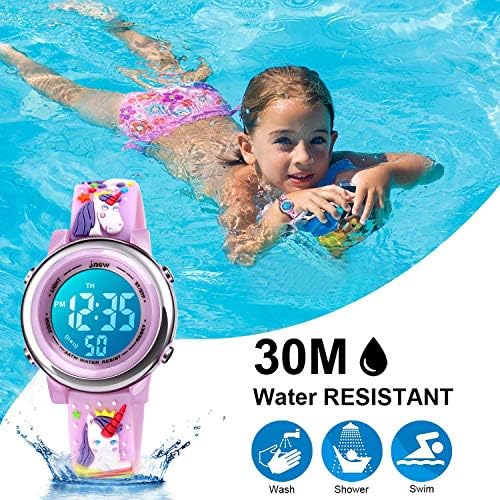 Water Resistant:Still worried about kids watches is waterlogged when kid wash hands or play with water ? Our kids watches is water resistant to 50 m (99 ft), meet daily Use. water resistant but not suitable for swimming. In general, withstands splashes or brief immersion in water. (NOTE: Please DO NOT press any buttons in the water or wear this watch for longtime underwater activities – such as diving, ect. Too much water contact or usage in extreme Hot or Cold temperature will shorter watch.