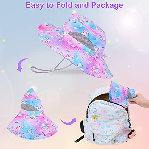 💝【Cute Printed Girls Sun Hat】Features with 8 cm wide brim and printed pattern like unicorn, mermaid and flower, this lovely kids UPF 50+ sun hat could block sun rays effectively.
