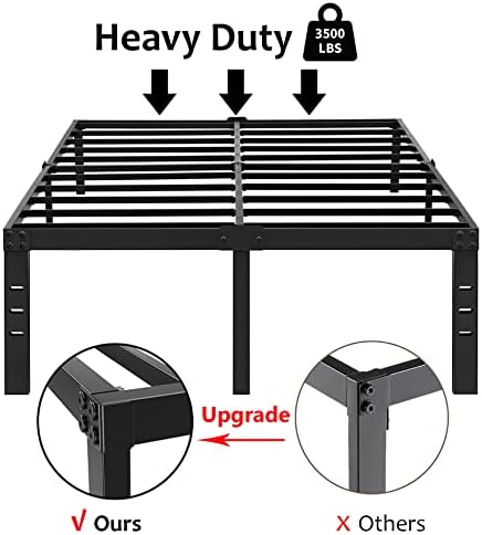 【No Box Spring Needed】Premium Seamlessly Welded Structure with Reinforced Steel Slats Support for 3500LBS Load-Bearing. 18 Inch high full size bed no box spring needed, mattress can be put on the slates directly. Great metal bed frame offers you a great sleep.