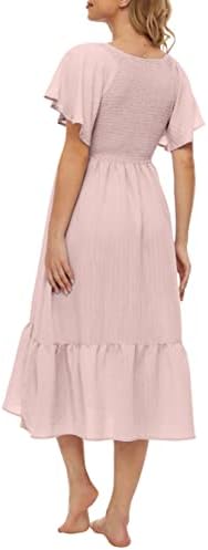 [Design] Boho style. Smocked, V-neck design, cute and stylish. Flutter Short Sleeve. Elastic waist. The light color maternity dress with the lining is opaque.